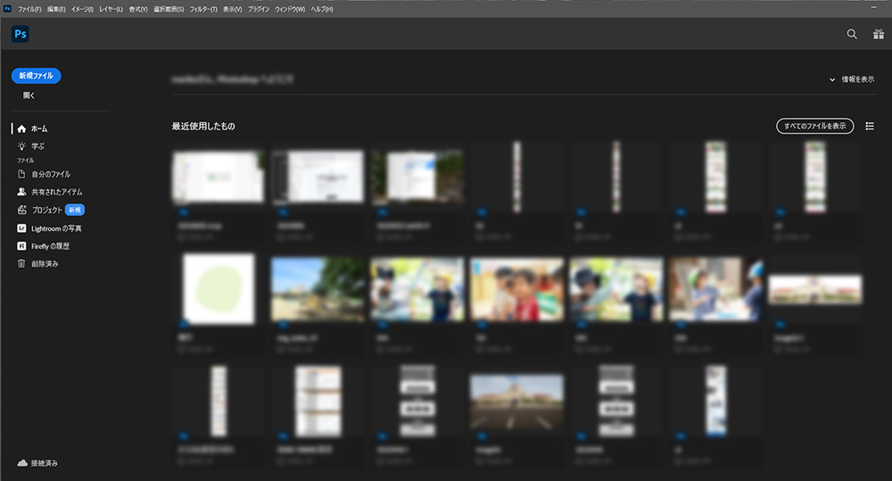 photoshopを起動し、最初に表示される画面のコレ↓↓↓です。