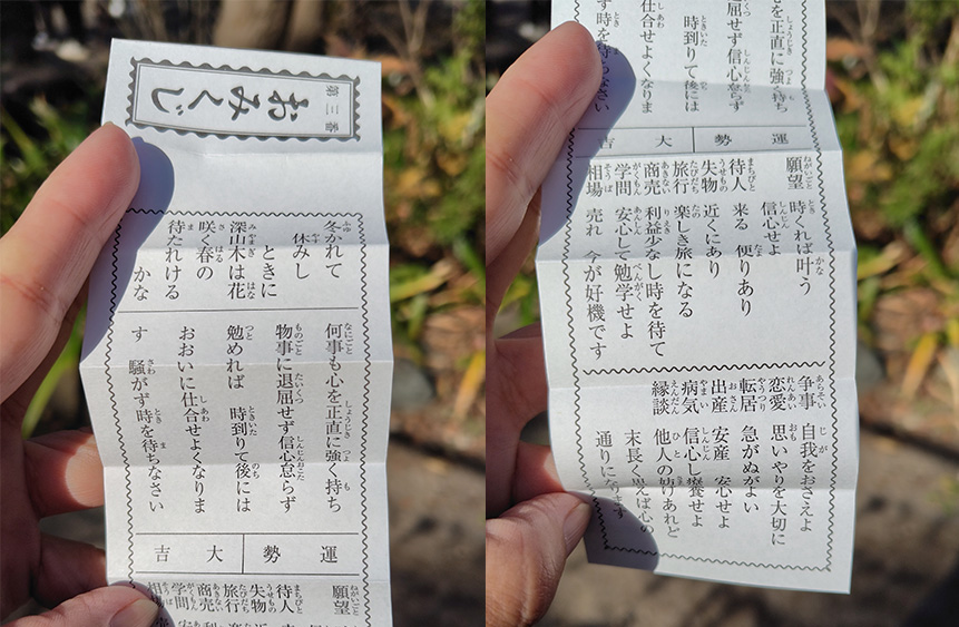 大吉ですが、くじよりも中に書いてあることが大事!