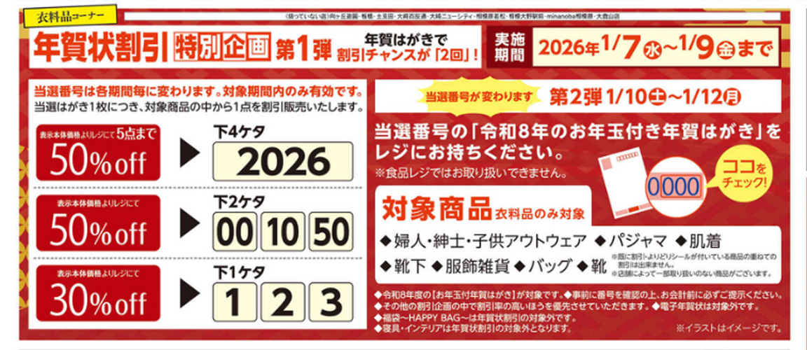 2026年スーパーライフの年賀状割引当選番号